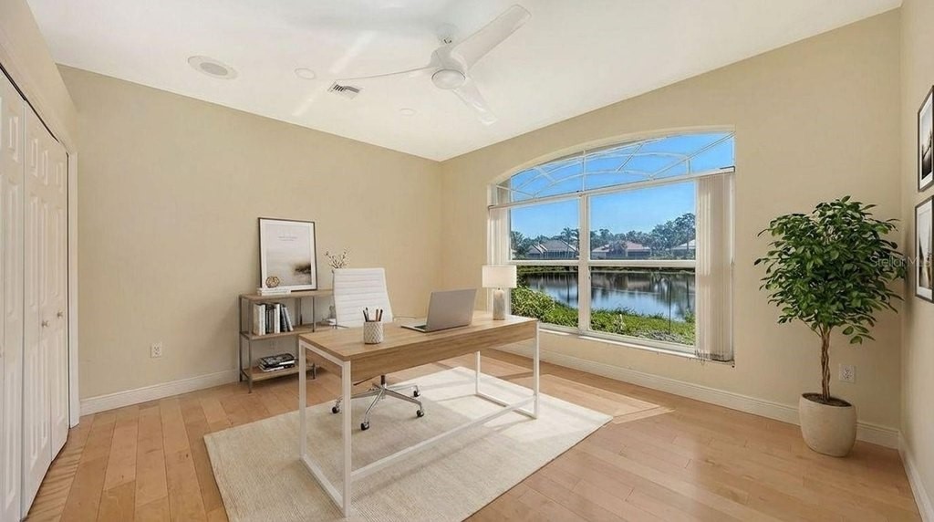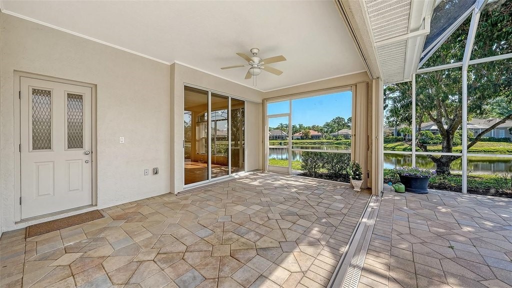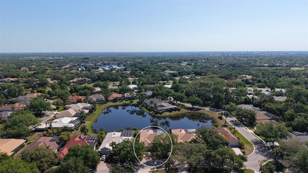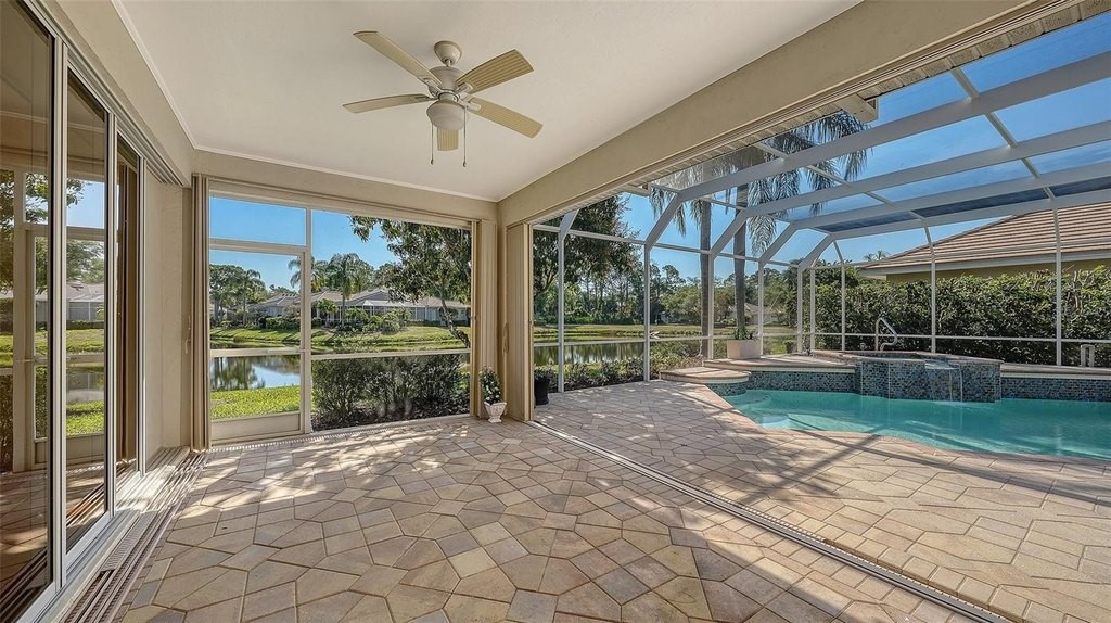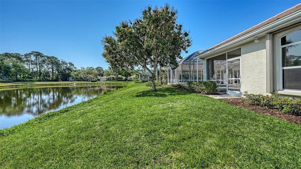 One or more photo(s) has been virtually staged. Eaton Place is ideally located in the heart of University Park Country Club. Very well-maintained LAKE FRONT 4 bedroom residence offers an exceptional blend of timeless elegance and thoughtful updates. NEW ROOF (2023) GENERATOR (2020), A/C system (2019), GARAGE DOOR (2019), accordion STORM shutters, and tinted windows. POOL & SPA RESURFACED & RE-TILED (2026). Brick-paver driveway and walkway, covered entry and refreshed landscaping, along with a two-car garage PLUS GOLF CART GARAGE. Spacious and well-designed split floorplan, the home is filled with natural light, enhanced by tall ceilings, neutral finishes, large format porcelain tile and luxury vinyl plank flooring and expansive living spaces. Formal living and dining rooms provide an inviting setting for entertaining, while the family room centers around a gas fireplace and sliding glass doors-flowing to the outdoor living areas. Chef's kitchen is beautifully appointed with quartz countertops, modern cabinetry with abundant built-ins, large center island plus breakfast bar seating, and stainless-steel appliances including a Sub-Zero refrigerator and Wolf gas range and convection microwave. Charming breakfast nook with aquarium window frames tranquil views. The private primary suite features a seating area, direct lanai access, and a spacious walk-in closet. The updated primary bath offers dual vanities, granite countertops, walk-in shower, and a soaking tub. Guest accommodations are thoughtfully arranged, including a pocket-door wing with two bedrooms and a full bath, as well as an additional bedroom and bath at the rear of the home for enhanced privacy. Impressive outdoor living with an oversized screened lanai, resort-style pool and spa, and two covered patio areas ideal for dining and relaxation. All overlooking serene lake views. A spacious laundry room with extensive cabinetry, utility sink, LG washer and dryer, and built-in storage adds everyday convenience. Residents of University Park Country Club enjoy access to 27 holes of championship golf, tennis and pickleball courts, fitness center, croquet, and a vibrant social calendar. Ideally located just minutes from downtown Sarasota, world-class beaches, fine dining, shopping, and cultural attractions, as well as the nearby Sarasota-Bradenton International Airport. This is true Florida living in one of Sarasota's premier gated country club communities, known for its exceptional amenities, optional membership opportunities, and convenient access to everything the area has to offer.